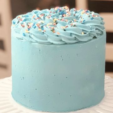 8" Classic, super moist vanilla cake frosted with smooth vanilla buttercream. Decorative piping available on top. Color customization available upon request.